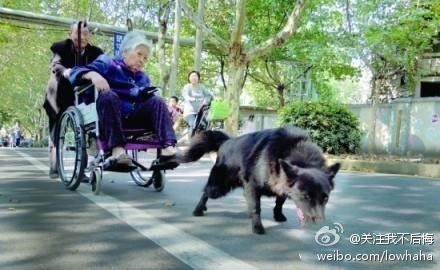 85岁的老太太坐在轮椅上,上坡时,90岁的老爷子在后面推着、2岁多的黑狗在前面奋力拉着--相濡以沫的老人和忠诚的黑狗一路走来,路人又惊奇又感动。这是南京的一位市民10月22日在市区苜蓿园东街拍下的一幕。