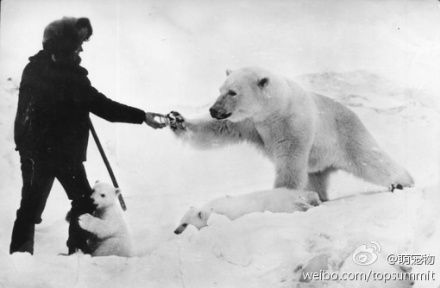 好友爱的一幕!给饿了的小北极熊食物。在蛮荒之地,气候恶劣。食物不足时,白熊会向人类求助。图为当地居民给饥饿的白熊妈妈提供炼乳,可爱的白熊宝宝忍不住抱住了这位叔叔。太友爱了。