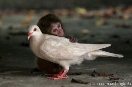一只与妈妈走失的小猴子,对这个世界既充满了恐惧,又满怀着希望,它深情地拥着白鸽,体验着这个世界;白鸽没有害怕和抗拒,它用接纳回应着这只孤独的小猴子。爱无疆,谁说过爱只存在于人类?
